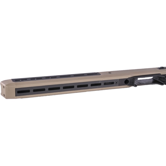 Das AICS-Muster-Magazinschacht verfügt über einen beidhändigen Magazinfreigabemechanismus und hat einen vorderen Barrikadenstop, um zu verhindern, dass das Gewehr beim Einsatz von Barrikadenunterstützung auf dem Magazin ruht. An der Vorderseite gibt es zahlreiche M-LOK-Schlitze (links-6 / rechts-6 / unten-7), die es dir ermöglichen, alle Zubehörteile zu montieren, die du brauchst.