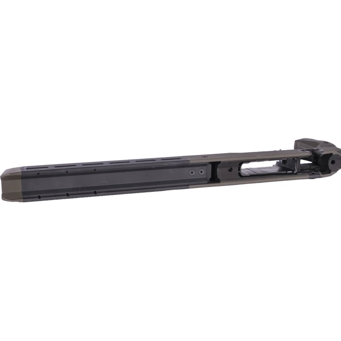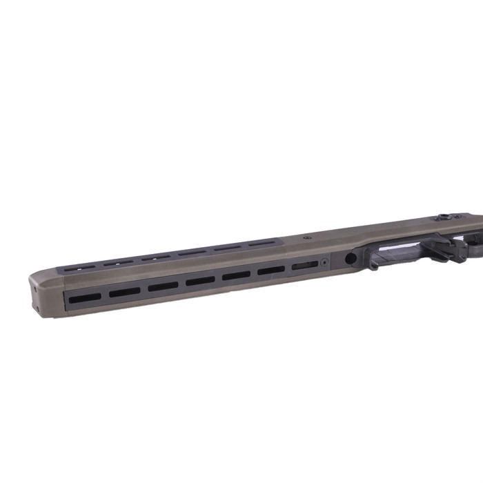 Der große Abzugsbügel ermöglicht die Verwendung mit Handschuhen und Nachrüstabzügen. Der AICS-muster Magazine Well verfügt über einen beidseitigen Magazinrelease und hat eine vordere Barrikadenstopp, um zu verhindern, dass das Gewehr beim Barrikadenstütz auf dem Magazin ruht. Vorne gibt es zahlreiche M-LOK Slots (links-6 / rechts-6 / unten-7), die es dir ermöglichen, die gewünschten Zubehörteile zu montieren.