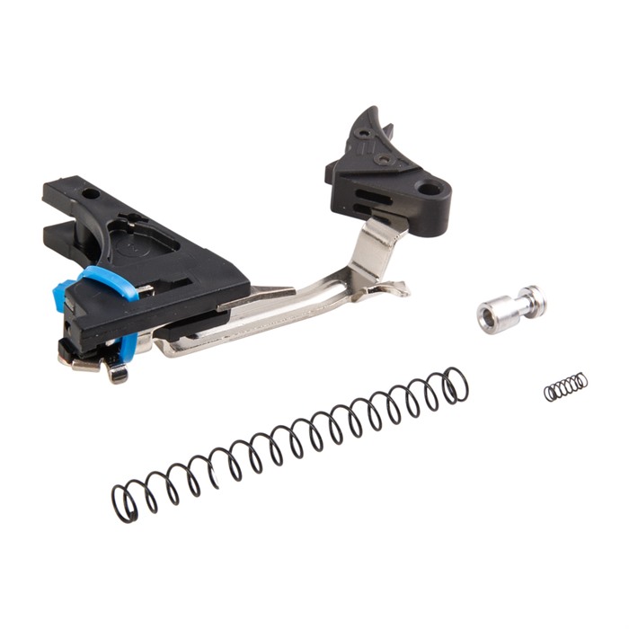 Das Pro Curved Trigger Kit kommt mit einer reduzierten Zündfeder, um ein leichteres Abzugsgefühl für Wettbewerbe zu erzeugen, sowie der werkseitigen Zündfeder für den täglichen Gebrauch und den Dienst.