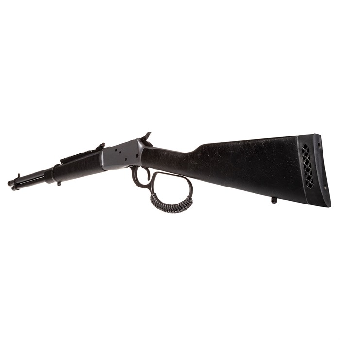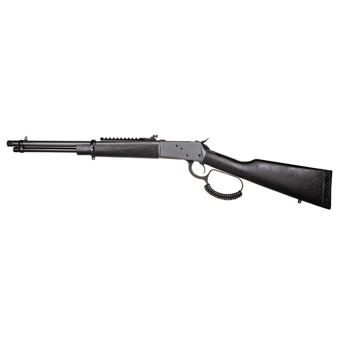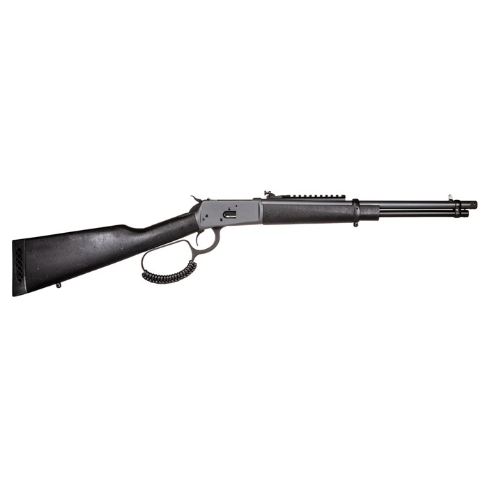 An ideal truck or saddle rifle, the 16-inch barrel R92 carbine is designed to resist the worst of elements. The stock and forend are wood painted with a durable all-weather black on black splatter paint. All metal parts are coated with a Cerakote finish for extreme durability. The rifle comes with an aluminum Picatinny rail to accommodate a red dot optic or scope and includes an adjustable rear peep sight for those who favor open-sight shooting. The R92 comes chambered in .357 Magnum/38 Special +P and a threaded barrel gives the option for a suppressor or muzzle break. SPECIFICATIONS: Caliber: 357 Magnum / 38 Special +P Capacity: 8 Rounds Front Sight: Drift Adjustable Rear Sight: Peep hole Sight On Picatinny Rail Action Type: Lever Action Barrel Length: 16.50 In. Overall Length: 33.70 In. Overall Height: 7.80 In. Overall Width: 1.50 In. Overall Weight: 97.8 Oz. (Unloaded) Twist Rate: 1:30-in RH Twist Grooves: 6 Stock Material: Wood Frame Material: Alloy Steel Frame Finish: Cerakote Barrel Material: Alloy Steel Barrel Finish: Cerakote Safety: Thumb Safety