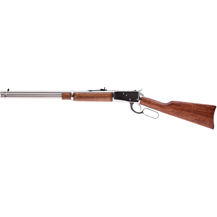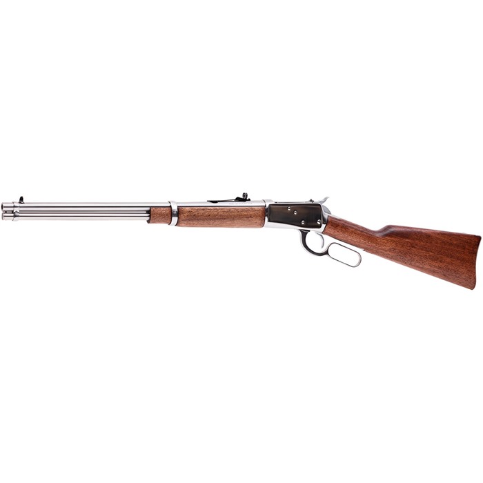 No rifle does classic American styling and swift, light handling like Rossi’s legendary R92. Built on the proven model 92 lever action. The Rossi R92 combines a traditional hardwood stock with blued or stainless finish to deliver a big-bore rifle suitable for the backwoods or the back forty. Adjustable rear buckhorn sight, an elegant classic wood profile, and an exquisitely smooth-cycling action prove that contemporary engineering can pair seamlessly with time-honored craftsmanship and design. SPECIFICATIONS: Caliber: 357 Magnum / 38 Special +P Capacity: 10 Rounds Front Sight: Drift Adjustable Rear Sight: Adjustable Buckhorn Action Type: Lever Action Barrel Length: 20.00 In. Overall Length: 37.20 In. Overall Height: 7.80 In. Overall Width: 1.50 In. Overall Weight: 98.9 Oz. (Unloaded) Twist Rate: 1:30-in RH Twist Grooves: 6 Stock Material: Wood / Laminate Frame Material: Alloy Steel / Stainless Steel Frame Finish: Polished Black Oxide / Stainless Barrel Material: Alloy Steel / Stainless Steel Barrel Finish: Polished Black Oxide / Stainless Safety: Thumb Safety