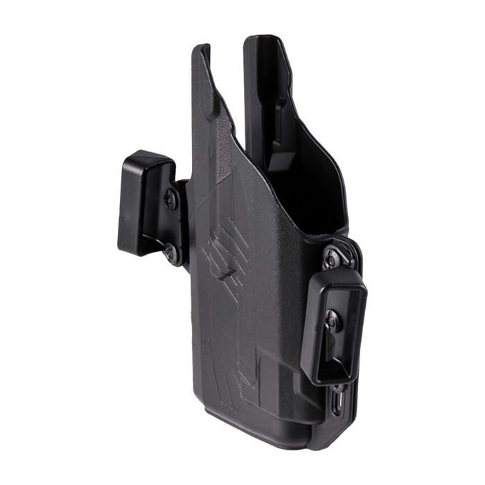 Die körpernahe Krümmung dieses Holsters wird durch modulare Gürtelschlaufen erreicht. Jedes Holster enthält drei Paare von 1,5” Gürtelschlaufen (LH 10 Grad Neigung, RH 10 Grad Neigung und ambi 0 Grad Neigung), die es dem Endbenutzer ermöglichen, den beidhändigen Holsterkörper für Links- oder Rechtshänder zu konfigurieren, entweder mit 0-Grad- oder 10-Grad-Neigung.