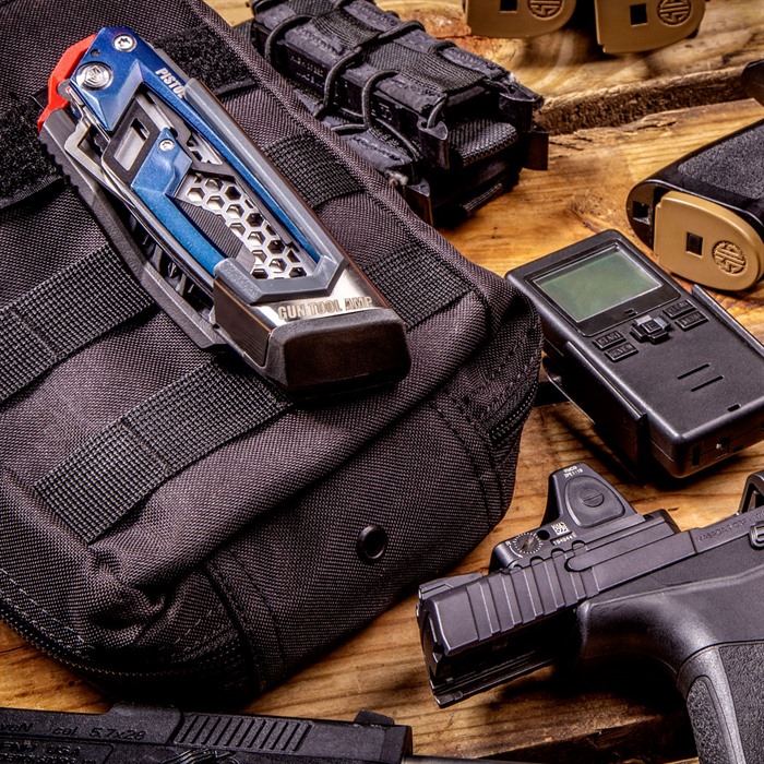 Das Gun Tool AMP von Real Avid ist die neueste Generation von plattform-spezifischen Multitools. Mit einem innovativen, transformerartigen Design, das eine selbstspeichernde Funktion bietet, dient der doppelte Schraubendreher und das Bit-Set als Holster für den Werkzeugrahmen und umfasst die entscheidenden Werkzeuge für deine Waffe.