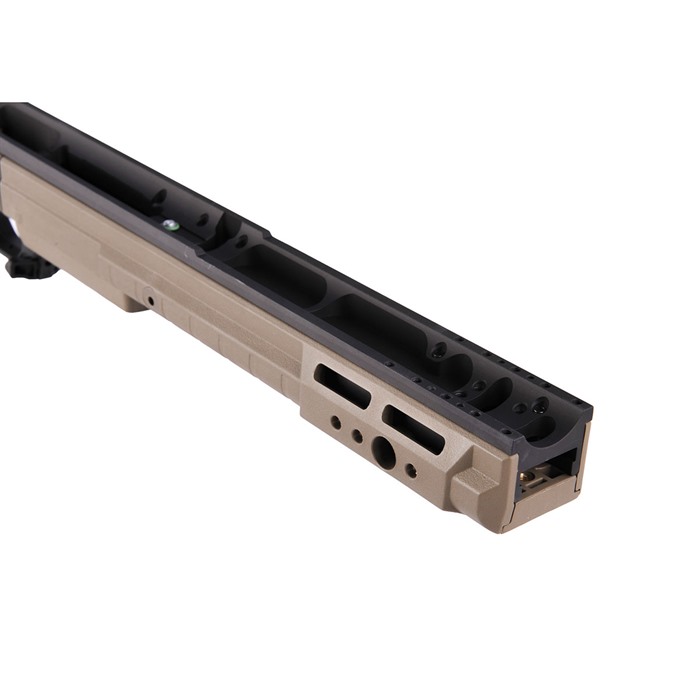 Du erhältst nahezu identische Ergonomie wie beim Whiskey-3, mit nur etwas mehr Zeitaufwand für die Anpassung der verschiedenen Aspekte, wie zum Beispiel der Länge des Abzugs. Darüber hinaus profitierst du von allen Standardvorteilen eines Chassis, wie der Nutzung von AICS-Magazinen, verschiedenen Montagepunkten für Slings, Barrier Stops usw. und einer Aluminiumblockbettung für den Verschluss, ohne dafür ein Vermögen ausgeben zu müssen.