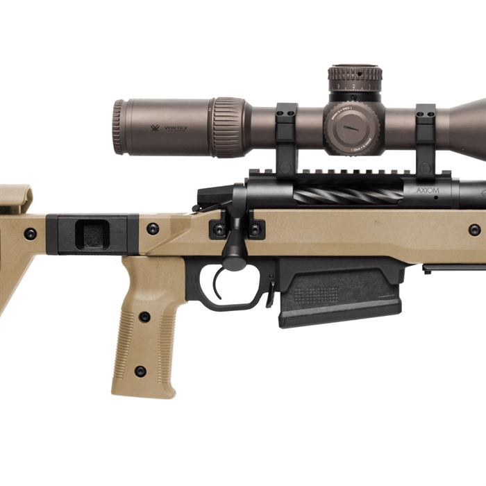 The Magpul Pro 700L Rifle Chassis is an uncompromising, full featured precision rifle chassis for long action Remington 700 and Remington 700-footprint rifles. The Pro 700L combines innovative engineering, precision machining, Mil-Spec quality finishes, and an extensive list of purposeful design features with complete adjustability to provide demanding end users with the most comprehensive available precision rifle platform solution for true out of the box performance. Based on a full billet aluminum skeleton and clad in Magpul polymer for environmental comfort, noise mitigation, and ergonomics, the Pro 700L is also fully ambidextrous. Capable of fitting both right and left-handed actions with the simple swap of a bolt-cutout plate, and with a reversible cheek riser and reversible hinge on the folding version, “lefties” haven’t been “left out.” MAG1002 PRO 700L - FOLDING STOCK IS SUPPLIED WITH THE PRO FHA - FOLDING HINGE ADAPTER (MAG999) INSTALLED MAG1003 PRO 700L - FIXED STOCK IS SUPPLIED WITH THE PRO FSA - FIXED STOCK ADAPTER (MAG998) INSTALLED Type III hard anodized machined 6061-T6 billet aluminum V-bedding block, body, adjustment knobs and forend with high strength injection molded polymer body covers optimally placed for comfort and aesthetics Ambidextrous bedding block can be changed by swapping the QD sling swivel plate and bolt retainer inserts for left or right hand actions using a 1/8” hex wrench A Magpul Pro NVM – Night Vision Mount clip-on mounting rail solution is available Overall LOP adjustment range is 13.25” – 15.125” Butt-pad height can be adjusted up 1.33” and down .90” and is adjustable left or right for a total of 5 degrees Comb height adjustment has a 1" range with a secondary locking knob to eliminate movement in the cheek riser Cheek riser features a 3-position fore/aft adjustment of +.375", 0" and -.375" which can also be changed for left or right side usage using only a common hex wrench Injection molded polymer grip with 5 degree forward edge sweep and enlarged palm swell with 7 degree aft edge sweep for enhanced user comfort combined with a .75" fore/aft adjustment range using a common hex wrench. Additional grip option included with a more aggressive sweep and enlarged palm swell for the shooter that is more inclined to a less vertical grip interface (8 degree forward / 20 degree aft edge sweep) Durable cast steel rotation limited QD sling swivel mounts with Melonite finish fits up to 1.5” push button swivels M-LOK slots for accessory mounting on the forend (left-6/right-6/bottom-7) and the stock (bottom-2) Integrated AICS pattern magazine well of reinforced polymer construction optimized for PMAG® 5 AC™ L, Standard and PMAG® 5 AC™ L, Magnum - AICS Long Action magazines as well as most other AICS pattern long action magazines Large trigger guard allows for use with gloves and accepts most factory and aftermarket curved or flat triggers Low-profile, anti-snag ambidextrous magazine release is made of Melonite treated steel for wear and corrosion resistance Made in the U.S.A.