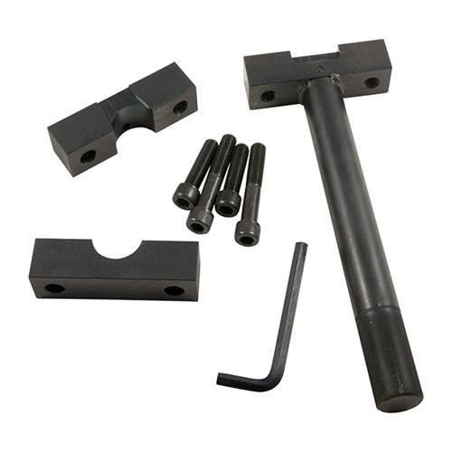 050806110854 Das einzige kommerziell verfügbare Action-Wrench-System, das den Empfänger-Ring und den Rückstoßblock umschließt und stützt, um potenziell schädliche Drehmomentkräfte gleichmäßig zu verteilen. Die solide Stahlbasis hat eine einzigartige, bearbeitete Aussparung, die den Rückstoßblock bei den meisten Mauser-typischen Repetierbüchsen freigibt, und die einzelnen, aufsteckbaren Köpfe sind so bearbeitet, dass sie eine exakte Passform um den Empfänger-Ring oder die Laufmutter für jedes der aufgeführten Waffenmodelle bieten. Zusammen stützen sie den Empfänger in einem Ring aus Stahl und erhöhen erheblich die Fläche für den Griff, um verdrehte Bolzenführungen oder beschädigte, ruinierte Empfänger vollständig zu eliminieren. Dies ist das fortschrittlichste, vollständige, professionelle Action-Wrench-System. Damit kannst du teure Schäden am Empfänger bei den meisten beliebten Repetierbüchsen, einschließlich Militärmodellen, sowie Modellen für ausgewählte Handfeuerwaffen verhindern. Der zweiteilige Kopf umschließt vollständig die zylindrische Bauweise für 100 % Kontaktfläche. Der obere Kopf wird an der vorderen Guard-Schraube ausgerichtet und positioniert den Rückstoßblock während der Laufinstallation korrekt. Enthält beide Köpfe und längere Schrauben. Passt auf alle Remington-Modelle mit einem Empfängerdurchmesser von 1,355". Das Doppelwinkel-Design akzeptiert den Werkstattblock oder das Tubb- und Shilen-Design mit Konus.Nachbestellt, Lieferzeit ca. 4-12 Wochen aus dem Großlager.