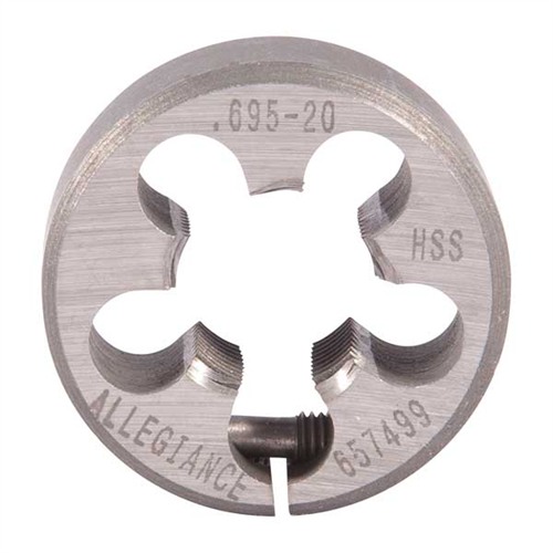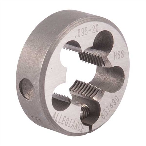 REVOLVER BARREL/FRAME DIES The Brownells Revolver Barrel/Frame Dies are precision tools designed for gunsmiths to accurately thread revolver barrels and frames, ensuring a secure and proper fit. Crafted from high-speed steel, these dies offer durability and maintain sharp threading capabilities over extended use. Key Features Material: High-speed steeL Compatibility: Specifically designed for Smith & Wesson® K Frame revolvers Application: Essential for rebarreling projects, whether installing factory replacements or custom barrels Threads: 5/40"-36 TPI Outside Diameter: 1" These dies are indispensable when rebarreling, as they ensure precise threading, maintaining the revolver's performance and safety standards. Incorporating the Brownells Revolver Barrel/Frame Dies into your gunsmithing toolkit provides the accuracy and reliability needed for professional-grade revolver maintenance and customization.