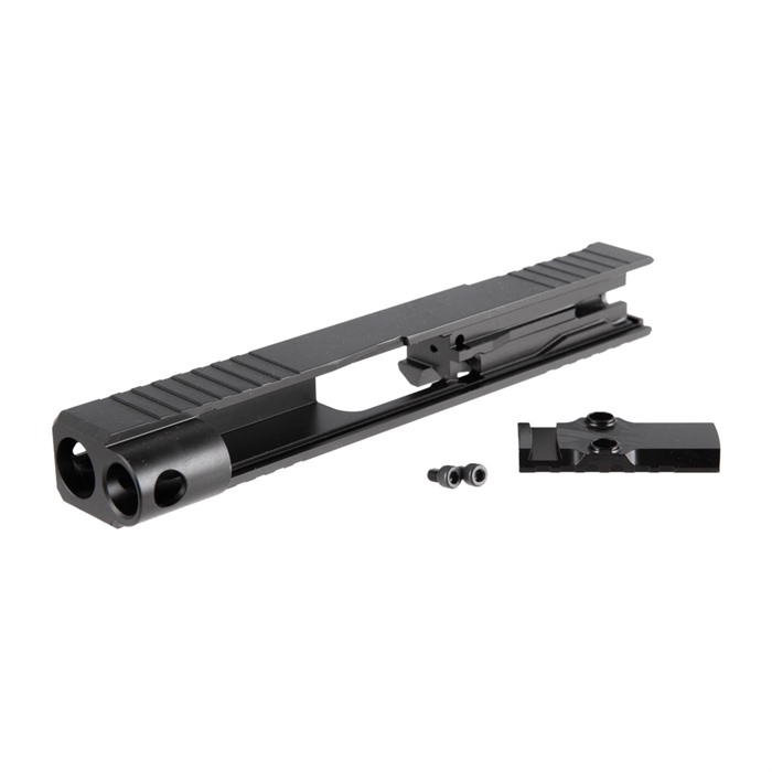 - Die internen Abmessungen sind identisch mit den OEM-Schlitten von Glock, sodass du originale Glock-Teile in den Schlitten einsetzen kannst, um deine komplette Waffe zu bauen.