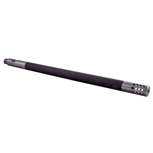 Ultra lightweight barrel features taper honed, match chamber and bore for outstanding accuracy. Carbon fiber or aluminum shroud with axial tension at both ends provides exceptional rigidity without excess weight. 22 LR barrels are drilled and tapped for barrel mounted, cantilever, scope mount. Installs in minutes without modification to gun. Comp 10/22® barrels feature single chamber, multi-port compensator for reduced recoil, faster follow-up shots.