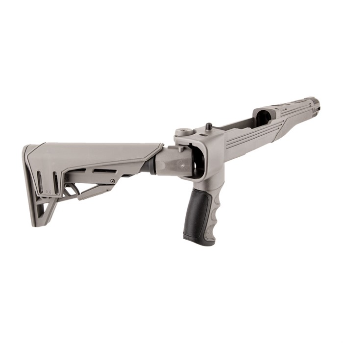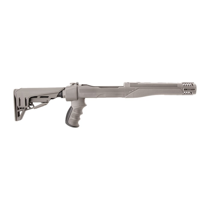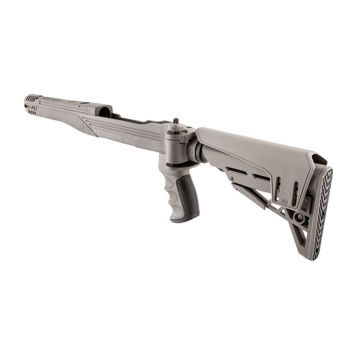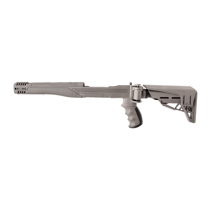 SPECS: DuPont Extreme Temperature Glass Reinforced Polymer, 6-position collapsible telescoping butt stock, Side folding stock, One 4-inch picatinny rail, Four 2-inch picatinny rails, Removable adjustable cheek rest, Non-slip removable rubber butt pad, Additional venting forend and top cover, Blank covers, Textured pistol grip, Three sling swivel studs, 6 degree tube drop adaptor for iron sights, For Ruger 10-22 rifles only, Lifetime manufacturer's warranty.