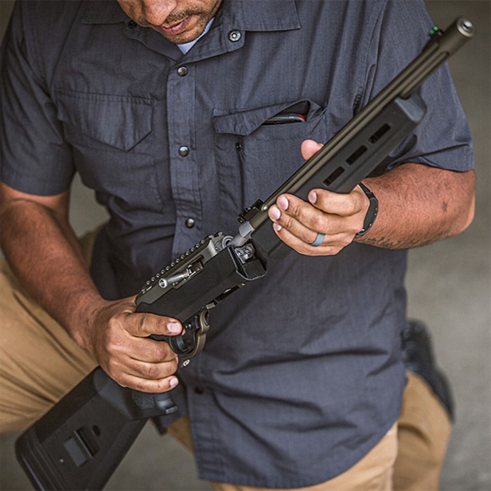 The Magpul Hunter X-22 Takedown chassis is an ergonomic, fullfeatured stock for the Ruger 10/22 Takedown series rifl e. Made from high quality reinforced polymer, the Hunter X-22 Takedown features an ergonomic grip, adjustable length of pull and comb height to fi t a wide variety of shooters, multiple sling mounting options, a non-slip rubber butt-pad, and M-LOK® slots for accessory attachment. The Hunter X-22 Takedown fits standard Ruger 10/22 Takedown .22 LR pattern rifles with no gunsmithing, and a reversible barrel tray ensures proper fit with factory pencil profile as well as heavy bull barrels. Drop-in design compatible with all factory Ruger 10/22 Takedown .22 LR receivers Reinforced polymer construction for strength and durability 60 degree grip angle from bore axis Adjustable LOP from 12.5”-14.5” with 0.50” Spacers Non-slip rubber butt-pad Optional Cheek Riser Kits to raise cheek height 0.25”, 0.50”, or 0.75” Reversible barrel tray accepts all factory barrels as well as aftermarket up to 0.920” Compatible with all capacities of factory Ruger 10/22 magazines M-LOK slots on forend sides and bottom for a wide variety of accessory and sling mounting options Two dimpled drill points to install optional standard swivel studs (#10-32 x 3/8” long dome stud) Push-button QD swivel compatibility in rear with optional Sling Mount Kits, Magpul item 100-010-975 Left and Right rear 1-1/4” Footman’s Loops Stock Only- Barrel and Receiver are not included