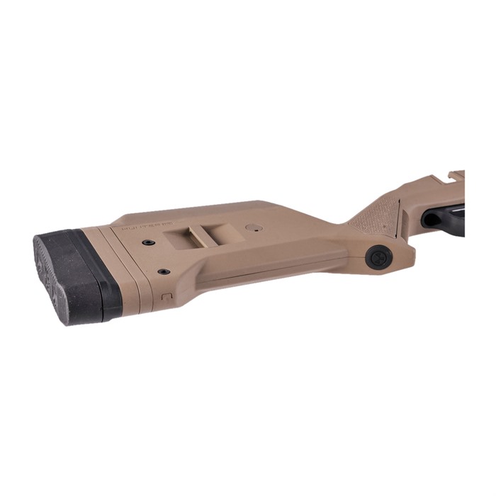 The Hunter 110 Stock – Savage 110 Short Action is the latest addition to the Magpul Hunter stock product line. It features enhanced ergonomics, versions for both right and left-hand actions, eight M-LOK® slots for mounting options, and a fully adjustable length of pull and comb height. These features have been optimally designed to provide a more stable shooting platform, improved user comfort and individual accessory customization. Like its predecessors, the Magpul Hunter 110 features a Type III hard anodized, machine-finished, cast aluminum bedding block that doesn’t require bedding and is a true “drop-in” stock solution. The Hunter 110 is designed for 3rd generation Savage short action Series 10/110 centerfire rifles that have center-feed magazine compatibility and action screw hole spacing of 4.40” (H-prefix and later) with production a date of 2006 and later. The Hunter 110 also includes Magpul’s Bolt Action Magazine Well for optimal functionality with AICS-spec detachable box magazines such as Magpul’s PMAG® 5 7.62 AC (sold separately). FEATURES Reinforced polymer shell with Type III hard anodized, machine finished, A380 cast aluminum V-bedding block. Available for right and left hand actions. Provides AICS-spec magazine compatibility for optimal performance and reliability (magazines sold separately) Made in the USA. SPECS Collection: Hunting Stocks Platform: Savage® 110 Butt-Pad Dimensions: 1.5 in W x 5.0 in H LOP Adjustment Range: 13.0 in, - 15.0 in. (13 in. with no spacers plus up to four half-inch spacers) Weight: 3.3 lbs. Width of Butt, max: 1.5 in. Width of Forend, max: 2.3 in. Compatible with 3rd generation Savage short action Series 10/110 centerfire rifles with center-feed magazine compatibility and action screw hole spacing of 4.40” that began in 2006. Compatible with barrel profiles up to Medium Palma and Savage Varmint barrel contours. Tapered Beam design provides rigidity through the forend and will free-float compatible barrels. Push-button QD swivel compatibility with optional Sling Mount Kits in rear of stock.