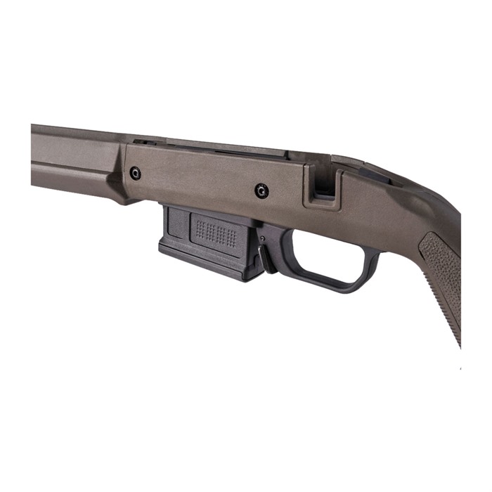 The Hunter 110 Stock – Savage 110 Short Action is the latest addition to the Magpul Hunter stock product line. It features enhanced ergonomics, versions for both right and left-hand actions, eight M-LOK® slots for mounting options, and a fully adjustable length of pull and comb height. These features have been optimally designed to provide a more stable shooting platform, improved user comfort and individual accessory customization. Like its predecessors, the Magpul Hunter 110 features a Type III hard anodized, machine-finished, cast aluminum bedding block that doesn’t require bedding and is a true “drop-in” stock solution. The Hunter 110 is designed for 3rd generation Savage short action Series 10/110 centerfire rifles that have center-feed magazine compatibility and action screw hole spacing of 4.40” (H-prefix and later) with production a date of 2006 and later. The Hunter 110 also includes Magpul’s Bolt Action Magazine Well for optimal functionality with AICS-spec detachable box magazines such as Magpul’s PMAG® 5 7.62 AC (sold separately). FEATURES Reinforced polymer shell with Type III hard anodized, machine finished, A380 cast aluminum V-bedding block. Available for right and left hand actions. Provides AICS-spec magazine compatibility for optimal performance and reliability (magazines sold separately) Made in the USA. SPECS Collection: Hunting Stocks Platform: Savage® 110 Butt-Pad Dimensions: 1.5 in W x 5.0 in H LOP Adjustment Range: 13.0 in, - 15.0 in. (13 in. with no spacers plus up to four half-inch spacers) Weight: 3.3 lbs. Width of Butt, max: 1.5 in. Width of Forend, max: 2.3 in. Compatible with 3rd generation Savage short action Series 10/110 centerfire rifles with center-feed magazine compatibility and action screw hole spacing of 4.40” that began in 2006. Compatible with barrel profiles up to Medium Palma and Savage Varmint barrel contours. Tapered Beam design provides rigidity through the forend and will free-float compatible barrels. Push-button QD swivel compatibility with optional Sling Mount Kits in rear of stock.
