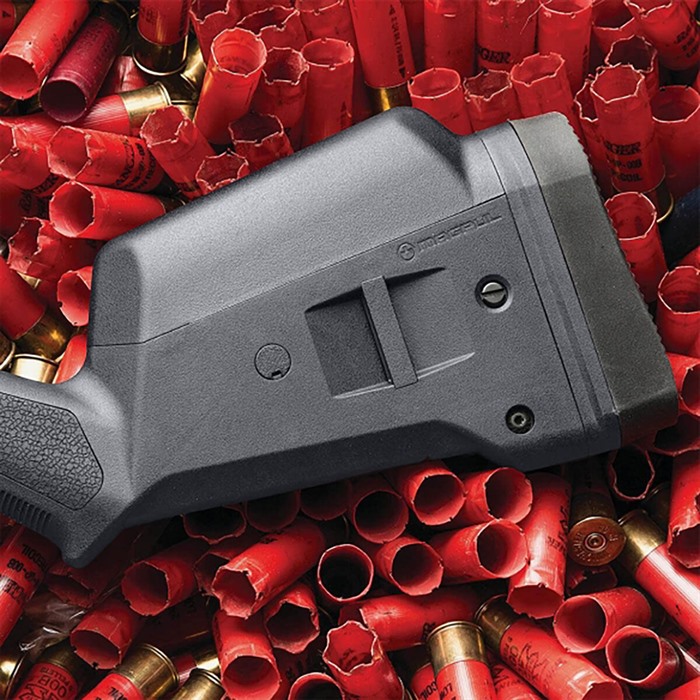 The SGA Stock is an ambidextrous, user-configurable buttstock designed to add much-needed adjustability to the tried-and-true Mossberg 500 / 590 / 590A1 12-gauge series of shotguns. Its features include a spacer system for length of pull adjustment, improved grip ergonomics, a recoil-reducing butt-pad, and optional cheek risers for use with optics/raised sights and other accessories. The Mossberg SGA brings Magpul design and engineering to another classic American firearm. Available in Black, Flat Dark Earth, Stealth Gray and Orange to adapt to the mission at hand. Made in the USA. FEATURES Spacer-adjustable lop in 1/2" increments from 12.5" to 14.5" Recoil-reducing butt-pad Integral right/left 1.25" sling loops SPECS Platform: Shotgun Compatibility: Mossberg® 500/590/590A1 12-gauge Butt-Pad Dimensions: 1.5 x 5.0 in. LOP Adjustment Range: ~12.3-14.3 in. Weight: 1.5 lbs. (with two Spacers installed) Width of Butt, max: 1.5 in.