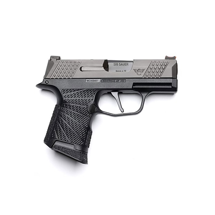 Wilson Combat engineers have changed the WCP365 slide’s shape and texture to make it more tactile under stress with our exclusive X-Tac pattern cocking serrations, side top serrations and heavy slide bevels all around. They have also perfected the action of the WCP365 and in combination with a Grayguns trigger and our spring modifications they can make the excellent 365 trigger even better. Each new model will be offered standard or action-tuned for those who want the best trigger pull possible in their defensive firearm. The Wilson Combat WCP365 can also be ordered with an optic mounting solution or your choice of direct milled option (With cover plate and rear Battlesight) for the Trijicon RMRcc, Holosun 407K or 507K, SIG Sauer Romeo Zero or Shield RMSc. With enhanced shootability, better ergonomics and superior optics sight capability-the Wilson Combat WCP365 has taken an already legendary product to the next level of performance. SIG/Wilson Combat WCP365 Specifications Available Calibers: 9mm Magazine Capacity: 10 Rounds Barrel Length: 3.1” Overall Length: 6” Sight Radius: 4.9” Height: 4.3” Width: 1.1” Weight Empty: 18.6 oz Weight Loaded: 23.1 oz Specifications: Wilson Combat P365 module Wilson Combat X-TAC P365 slide with machine bevels DLC finish on slide X-TAC pattern front and rear cocking serrations Slide top serrations Cover plate installed over optic cut Carry cut Wilson Combat logo on slide Wilson Combat battlesight with red fiber optic front sight (slightly taller iron sights for optic) SIG factory magazine release SIG factory slide stop Action tune with straight trigger 2 10rd magazines 9mm caliber only Not CA Compliant MORE INFO Rail for mounting light or laser (Any light compatible with SIG factory 365 modules) Special serial number range with WCX prefix