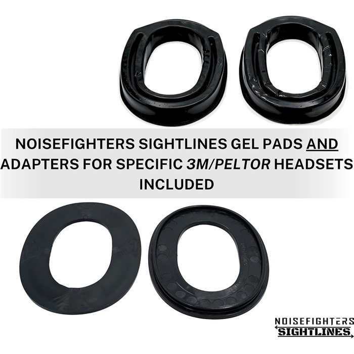 SIGHTLINES GEL EAR PAD ADAPTER PLATES W/ADHESIVE BACKING Noisefighters® Sightlines Gel Ear Pads – with patented relief cut for glasses arms to slide through to prevent headaches and reduce noise Upgrade your headset experience with Noisefighters Sightlines gel ear pads. Made in the USA, these innovative replacement pads feature a patented relief cut feature that allows your glasses to pass through comfortably, eliminating the frustration of headset pressure on your frames. Crafted from premium silicone gel and polyurethane materials, they provide superior noise isolation and long-lasting cushioning for extended wear. Compatible with most popular headsets, these versatile ear pads offer a customized fit and enhanced comfort. Whether you are sport shooting, operating machinery, or enjoying your favorite tunes, Noisefighters Sightlines ensure an immersive audio experience without compromising your hearing or comfort. Upgrade your hearing protection today and experience the difference. Their design features a rim to slide under the clips on headsets like Howard Leight® Impact Sport plus a non-permanent, pressure-sensitive adhesive for a much more secure fit and peel + stick compatibility with their optional snap-in plastic adapter plates to fit headsets from dozens of manufacturers. This model is also compatible with any headset that utilizes oval pads that are 4" tall x 3" wide and allow users to peel off / remove their original pads and apply new adhesive-backed pads. Their gel ear pads are 0.625" thick. HERE ARE THE COMPATIBLE HEADSETS USING EITHER THE ADHESIVE BACKING OR THE INCLUDED ADAPTER PLATES: 3M™ WorkTunes™ Wireless / Bluetooth model (please additionally purchase their Peltor™ ComTac™ style cloned adapter plates if you own the old-style WorkTunes™ headset that only has an AM/FM radio) - 3M™ Peltor™ RangeGuard™ - 3M™ Peltor™ Sport Tactical 100 / 300 / 500 - Awesafe® GF01 - Axil® / Sportear® Trackr™ (Including BLU) - Caldwell® E-Max (standard and low-profile) - GLORYFIRE™ M8056T - Howard Leight® Impact® Sport (including Bolt® version) - Howard Leight® Impact® Pro - Howard Leight® Leightning® - Howard Leight® Sync® - Howard Leight® Verishield - Howard Leight® Viking® - ISOtunes LINK 1.0, LINK 2.0, LINK Aware, DEFY - Kask® SC1 / SC2 / SC3 - Mpow® Noise Reduction Safety Ear Muffs - NoiseBuster® PA4000, PA4100, and PA4200 - Ops-Core® AMP® (note: outer lip may overlap and can be removed with knife / scissors, but this is only an aesthetic issue) - Otto® NoizeBarrier® Range SA and TAC - Peltor™ RangeGuard™ and Peltor™ Sport Tactical™ 100 / 300 / 500 - Pro Ears® - multiple models compatible; customer must verify that their original pads can be peeled off and thier oval 3 x 4" pads can be glued on - Radians® - multiple models compatible; customer must verify that their original pads can be peeled off and their oval 3 x 4" pads can be glued on - Savior Equipment® Apollo - (existing pads can be peeled off the existing plastic plate and residue cleaned up, and new pads can be applied, but we instead recommend additionally purchasing their AD108 Sightlines with Adapter Plates for Savior® Apollo and similar headsets due to the improvement in secure mounting) - TR Industrial® Forestry Safety Helmet and Hearing Protection System - Walker's Game Ear® FireMax® (requires cutting off original pads and reusing the factory-installed plastic plates) - Walker's Game Ear® Recon® (requires cutting off original pads and reusing the factory-installed plastic plates) - Winchester® Passive Folding Earmuffs / Low Pro Passive Folding Earmuffs Noisefighters is in no way affiliated with 3M Peltor® (or any other headset manufacturer) and they have not been involved in the development, manufacturing, labeling, testing, or certification of any Noisefighters products. 3M Peltor has stated that modifying their headsets may negatively impact sound attenuation and it makes the 40 CF 211 Subpart B noise reduction rating inapplicable. FEATURES: Comfort for Glasses Wearers: A patented relief cut, these pads allow glasses to pass through comfortably Fully compatible with headsets from Howard Leight®, 3M Peltor®, Ops-Core®, Sordin®, Walker’s Game Ear®, and other headsets by installing optional adapter plates; please see attached images for compatibility information The adhesive is non-permanent, and pads can be removed dozens of times, or even swapped between headsets, without degrading the bonding strength Designed, manufactured, and assembled in the USA and covered by a one-year unconditional warranty Noisefighters® is a combat veteran owned company