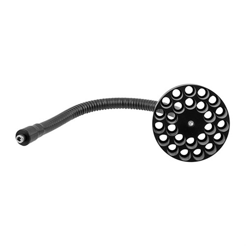Die Basis des Sinclair Competition Rests beginnt mit einer ein Zoll dicken, soliden Stahlbasisplatte mit einer langlebigen Granit-Pulverbeschichtung. So erreichen wir ein massives Gewicht von über 30 Pfund bei einem tiefen Schwerpunkt, kombiniert mit einem Fußabdruck, der nicht größer ist als der anderer auf dem Markt erhältlicher Dreibeinstative. Er ist fast doppelt so schwer wie unser nächster Mitbewerber.