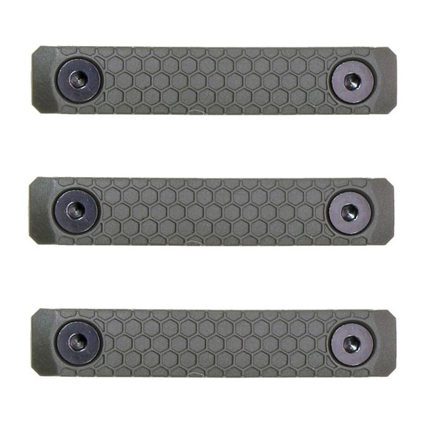 Slate Grips are a drop in/screw on upgrade to any grip, rail or any in-spec MLOK compatible system. The thin profile and raised texture offer an enhanced gripping surface for the user. These panels boast durable steel hardware and extra MLOK lugs (over some similar designs) for increased durability and security. The grip material maintains the ability to withstand high temperatures, providing the user with insulation. Designed by military and competition shooters, Slate Grips will interface well with many of the popular hand stops, vertical grips, and angled grips available on the market today. SBI polymers are optimized for stippling, but we highly recommend BLACK polymers for stippling only due to polymer dye discoloration. SBI’s FDE is a "peanut-butter" brown, and ODG is a direct match for Magpul's coloration. Sometimes photography may show it in a skewed color depending on the studio lights used.Available in 1 slot, 2 slot, or 3 slot variety, Slate Grips are sold in packs of three (3). Material: fiber reinforced high-temp polymer. Length [1-Slot - 1.57in long - 2-Slot - 3.16in long - 3-Slot - 4.74in long]