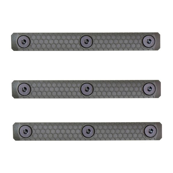 Slate Grips are a drop in/screw on upgrade to any grip, rail or any in-spec MLOK compatible system. The thin profile and raised texture offer an enhanced gripping surface for the user. These panels boast durable steel hardware and extra MLOK lugs (over some similar designs) for increased durability and security. The grip material maintains the ability to withstand high temperatures, providing the user with insulation. Designed by military and competition shooters, Slate Grips will interface well with many of the popular hand stops, vertical grips, and angled grips available on the market today. SBI polymers are optimized for stippling, but we highly recommend BLACK polymers for stippling only due to polymer dye discoloration. SBI’s FDE is a "peanut-butter" brown, and ODG is a direct match for Magpul's coloration. Sometimes photography may show it in a skewed color depending on the studio lights used.Available in 1 slot, 2 slot, or 3 slot variety, Slate Grips are sold in packs of three (3). Material: fiber reinforced high-temp polymer. Length [1-Slot - 1.57in long - 2-Slot - 3.16in long - 3-Slot - 4.74in long]