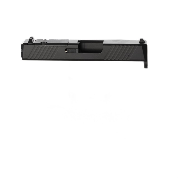 Build a Compact Custom EDC Pistol With Integral Red Dot Sight Mount Do you want to upgrade for your factory G43 or build a brand-new custom gun on a compatible frame from another manufacturer? The Brownells Slide for Glock® 43 pistols is just the ticket for this project! Our slide features a pre-cut slot for easy, secure, low-profile mounting of a reflex red dot sight that fits the Holosun 407K footprint (adapter plates are available separately for RMR sights). If you're not mounting a red dot at the moment, we've included a lightweight polymer cover plate to neatly fill the slot. Our G43 Slide comes with standard-height front and rear sights, which can serve as your primaries or as backup "iron" sights when paired with a red dot sight. You can get your Brownells RMR Slide for Glock® 43 with the standard solid top or with a "window" cutout up front that enhances air flow to cool the barrel - ideal for hard-working action competition pistols. If you have an upgraded barrel with a contrasting finish or a unique exterior pattern (fluting, spirals, flames, etc.) the window lets you show it off! Or install our ported barrel for Glock 43, and combustion gas venting from the barrel ports through the window will counteract muzzle rise and help you keep the sights on the target for subsequent shots. There's no need to install a bulky compensator on the muzzle, which means your new comped pistol will still fit holsters for the standard Glock® 43. Fits Glock® 43 pistols & clones Built-in mounting slot for reflex sights with the Holosun 407K footprint Optic slot cover plate & recoil spring assembly also included Factory front/rear iron sights installed Machined from 416 stainless steel billet, black Nitride finish Available with traditional Solid top or distinctive top Window cutout Each of our slides for Glock® starts life as a billet of 416 stainless steel that is machined to Glock® factory specifications inside, so it’ll accept factory or aftermarket barrels and internal "small" parts. Each slide comes with a tough, wear-resistant black Nitride finish. This slide fits standard Glock® factory G43 frames and compatible aftermarket frames. On the sides at the rear, you'll find distinctive wide, shallow cocking serrations that give excellent "purchase" to rack the slide, plus a mirror set of serrations up front that aid in manipulating the slide to press-check the chamber. Both sets of serrations make it easy to manipulate your pistol's slide from any angle and in any position. And we'll admit it: these serrations just look cool, too! Whether you're doing an ambitious "built from scratch" custom pistol or you're upgrading a factory Glock 43 for enhanced versatility, a Brownells slide is the perfect component for your project! Brownells Gun Tech™ Note: Channel liner required for these slides (#078000649). Channel liner is a press fit and requires a tool to install; we recommend #777100017.