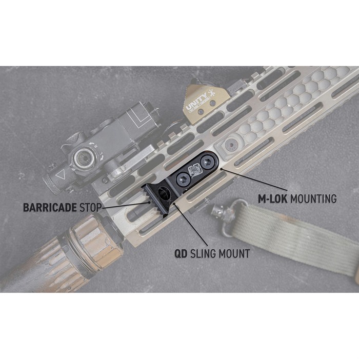 Der PRESSCHECK BARRICADE STOP von SONS OF LIBERTY GUN WORKS ist ein präzise gefertigtes M-LOK Zubehör, das zwei Funktionen in einem kompakten Design vereint: Es dient sowohl als Barricade Stop als auch als QD Sling Mount.