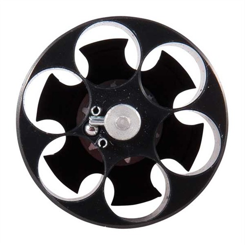 Compact, lightweight carrier provides an excellent combination of reloading speed, secure carry and dependability. Cartridges are held securely until you’re ready, then release with just a twist of the knurled knob. Simple to load: turn the knob to the load position; set rounds in place; twist the knob to latch. Metal cam points move into place over the cartridge rims. To load the gun: guide the bullet noses into the cylinder, twist the knob and ammo instantly drops into place.