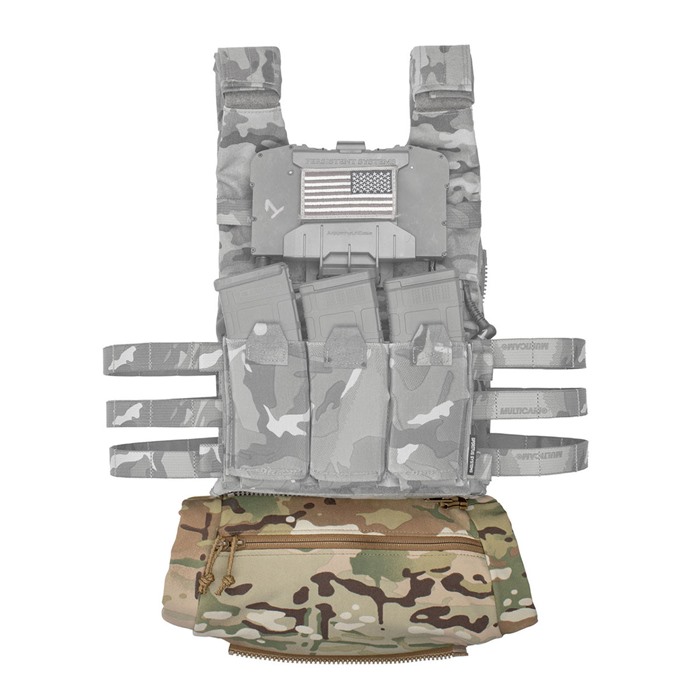 - Positioniere den MUFF an der Unterseite des Plattenträgers oder Chest Rigs.