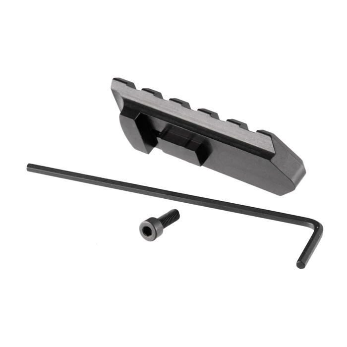 Der übergroße Rückstoßstift verhindert, dass sich der Scope Mount selbst bei Verwendung von starken Magnum-Ladungen verschiebt. Er akzeptiert alle Weaver-Stil Befestigungspunkte und Picatinny-Zubehörteile. Mit einer Länge von 2-1/2 Zoll ist er in schwarz oder silber mit matter anodisierter Oberfläche erhältlich und wiegt nur 1 Unze. Die mitgelieferte Befestigungsschraube hat ein 6-40 Gewinde.