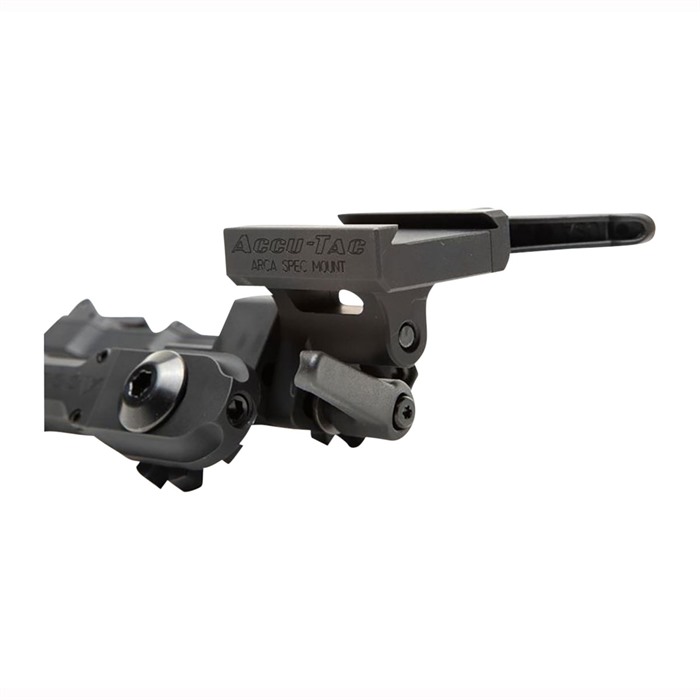 The Accu-Tac SR-5 G2 Bipod was designed, engineered, and manufactured in the USA. It is 100% billet, made from the highest quality aircraft aluminum available. Its wide stance and ratcheted leg extension gives you the adjustability needed for precision aim and repeatability. You will feel the stability and security of your rifle as never felt before. The SR-5 G2 has the ability to cant which can be locked with its new throw lever. Accu-Tac’s quick detach rail mount is simple, quick, and very secure; it attaches to a 1913 Picatinny rail and mounts in seconds without the need to use extra tools for tightening. Their ratcheted leg extension design allows the shooter to quickly adjust to 5 different heights without having to align each leg equally. The spring-loaded leg extension retracts quickly with a one-button retraction lever. The retracted leg height of 6 inches extends to a full open position of 10 inches with 3 other positions in-between. To engage or adjust leg position, simply pull the spring loaded leg downward to move each leg independently. Leg position can be deployed in a 90 degree, 45 degree position either forwards or backwards, locking securely into 5 positions through a 180 degree arc. Accu-Tac’s quick detach rail mount is simple, quick, and very secure. The quick detach attaches to a standard Arca Swiss or Arca style rail and mounts in seconds without the need to use extra tools for tightening. Our ratcheted leg extension design allows the shooter to quickly adjust to 5 different heights without having to align each leg equally. The spring-loaded leg extension retracts quickly with a one-button retraction lever. The retracted leg height of 6 inches extends to a full open position of 10 inches with 3 other positions in-between. To engage or adjust leg position, simply pull the spring-loaded leg downward to move each leg independently. Leg position can be deployed in a 90 degree, 45 degree position either forwards or backwards, locking securely into 5 positions through a 180 degree arc. Quick Detach: Materials 6061 T6 Aluminum alloy / High strength steel hardware Min. Height (Legs at 45°) 6.25” / 158.75 mm Min. Height (Legs at 90°) 8.0” /203 mm Max. Height (Legs at 90°) 10.75” / 273 mm Min. Stance (Legs at 45°) 9.25” / 235 mm Max. Stance (Legs at 90°) 15.75” / 400 mm Closed Position Width 3.25” / 82.5 mm Closed Position Length 9.0” / 228.6 mm Weight 22 oz Color Flat Black Coating Type III ( MIL-SPEC ) Hard Anodize Arca Spec: Materials 6061 T6 Aluminum alloy / High strength steel hardware Min. Height 6.5” / 165mm ( Legs at 45° ) Min. Height 8.25” / 210mm ( Legs at 90°) Max. Height 11.00” / 279.40 mm ( Legs at 90° ) Min. Stance 9.25” / 235mm ( Legs at 45° ) Max. Stance 15.75” / 400mm ( Legs at 90° ) Closed Position Width 3.250” / 82.5mm Closed Position Length 9” / 228.6mm Weight 22.96 oz Color Flat Black Coating Type III ( MIL-SPEC ) Hard Anodize