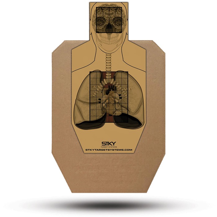 IPSC OG SKIN TARGET 25 PACK Take your training to the next level with the STKY Targets IPSC A & C Zone Adhesive Targets featuring the iconic STKY OG design. Combining functionality with a bold aesthetic, these kraft paper targets are ideal for competitive shooters and serious marksmen. FEATURES: Integrated STKY OG Design: The printed STKY OG adds a striking visual element, keeping your sessions sharp and focused. Anatomically Correct: The iconic OG design is anatomically correct to a 6" person with the vitals of the chest and head. Effortless Adhesive Backing: Peel, stick, and shoot—no tape or hassle, making target changes fast and efficient. IPSC Precision Layout: Designed to match A & C zone specifications, ensuring accuracy for competition-grade practice.With the signature STKY OG flair, these targets not only deliver performance but also style to your range setup. Stick • Shoot • Repeat