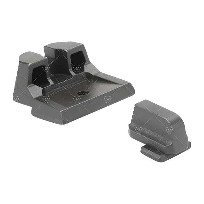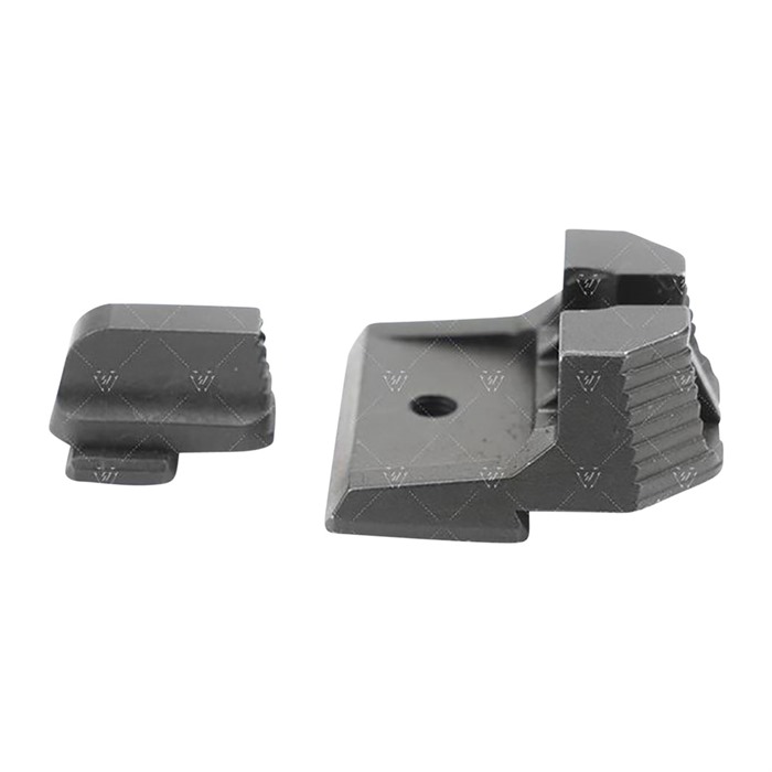The Strike Iron Sights (Suppressor Height) give you an elevated sight picture for a red dot or suppressor pistol setup. The front and rear sights sit at an absolute co-witness position with a slide mounted red dot. Designed to help with proper sight alignment and keep the shooter's eyes focused, there is natural light that is seen on both sides of the front sight between the u-notch rear sight. Steps placed in the rear of both sights help angle and reduce unwanted glares or reflections out of your eyes. Lines and angles designed to use natural light reflections and shadow play to keep user's eye aligned and focused on the target. The rear sight is designed with a negative angle so that the shooter will see the back wall as dark as possible to give total focus on the sights. The line running down the middle of the rear sight is there to catch light from above and create a "line" illusion in which the shooter can use it to assist in aiming. The front sight can be painted to user’s color preference or use glow-in-the-dark paint to customize the look and use of the sights. Made from SUS630 hardened stainless steel, the Strike Iron Sights For (Suppressor Height) is engineered to be as robust as possible while giving you one of the most budget friendly options on the market.