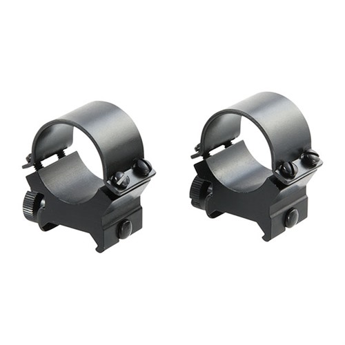 Steel caps with two screws per side provide extra strong, 4-screw, clamping power. Helps ensure that reticle stays square while tightening top screws. Large clamp nut locks rings to base, provides easy scope installation, removal; and accurate return to zero after re-installation.