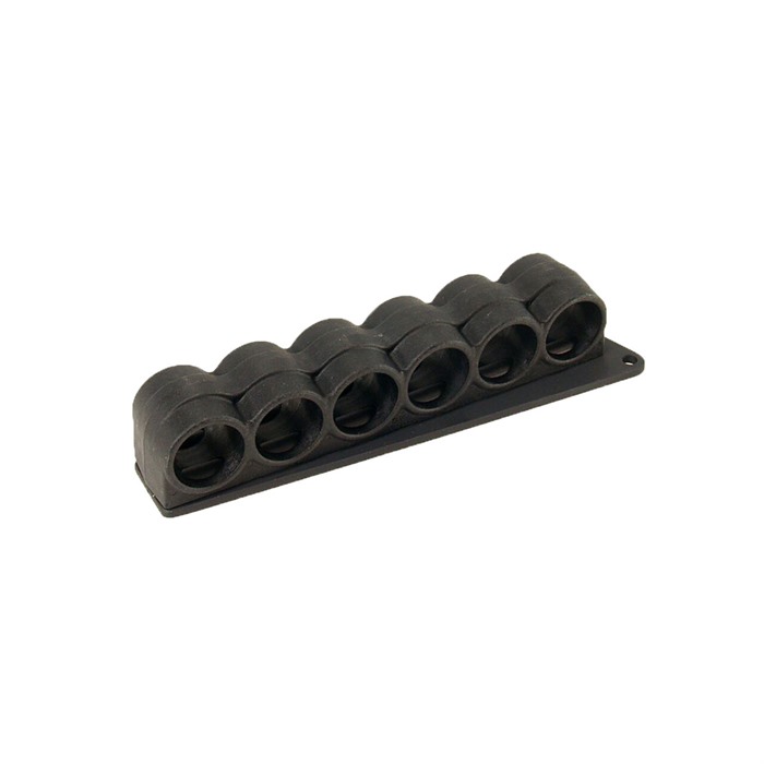 Die SureShell® Polymer Shotshell Carrier sind aus strapazierfähigem, schlagfestem Polymer gefertigt und bieten eine kostengünstige Alternative zu den günstigen Plastik-Hülsenhaltern der Konkurrenz. Der Shotshell-Träger ist in einer Konfiguration für sechs Hülsen erhältlich und verfügt über Hülsenhalter, die aus glasgefülltem Polymer spritzgegossen sind. Sie sind mit einer leichten Aluminium-Rückplatte und messingbeschichteten Einsätzen am Empfänger befestigt.