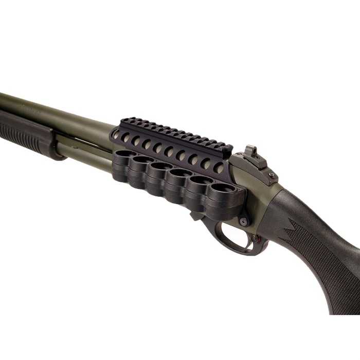 878405004356 Trage mehr Munition "bereit": Professionelle Anwender, die keine Kompromisse bei Qualität, Leistung und Haltbarkeit eingehen wollen, finden die polymeren Shotshell-Träger von Mesa Tactical besonders attraktiv und wirtschaftlich im Vergleich zu den kostengünstigen Kunststoff-Schalenhaltern der Konkurrenz. Die SureShell® Polymer Shotshell-Träger bestehen aus strapazierfähigem, schlagfestem Polymer. Dieses Shotshell-Trägersystem, erhältlich in einer Konfiguration mit sechs Schalen, verfügt über Schalenhalter, die aus glasgefülltem Polymer spritzgegossen sind und durch eine leichte Aluminium-Rückplatte mit messingbeschichteten Gewindeeinsätzen am Empfänger befestigt sind. Der SureShell Polymer Carrier beinhaltet auch ein innovatives doppeltes Gummireibungssystem, das die Shotshells zuverlässig an ihrem Platz hält. Einige SureShell-Träger enthalten hochtemperaturbeständige, selbstklebende, gestanzte Gummidichtungen, um die Oberfläche der Waffe zu schützen. Das SureShell-Montagesystem für Remington 870, 1100 und 11-87 verwendet eine Kombination aus Stahlbefestigungen, die in einen Stahlstift (hinten) und gepaarte Chicago-Schrauben (vorne) eingeschraubt sind, um eine sicherere Befestigung an der Schrotflinte zu gewährleisten, ohne das Risiko, den Empfänger zu klemmen. Die Montageplatte verfügt sogar über ein Fenster über der Seriennummer der Schrotflinte, um es den Waffenmeistern zu erleichtern, ihre Waffen zu inventarisieren. Modelle sind mit und ohne integrierte Picatinny-Schienen zur Montage von Optiken erhältlich. Wie alle SureShell-Träger funktionieren die neuen polymeren SureShell Shotshell-Träger in allen Klimazonen und Umgebungen gut und sind dafür ausgelegt, den täglichen Gebrauch und Missbrauch standzuhalten, dem Arsenalwaffen häufig ausgesetzt sind. Dieses System hält die Schalen sicher an ihrem Platz, bis sie benötigt werden, und macht sie leicht zugänglich und schnell entnehmbar für ein schnelles Nachladen.Lieferzeit ca. 14-21 Tage.