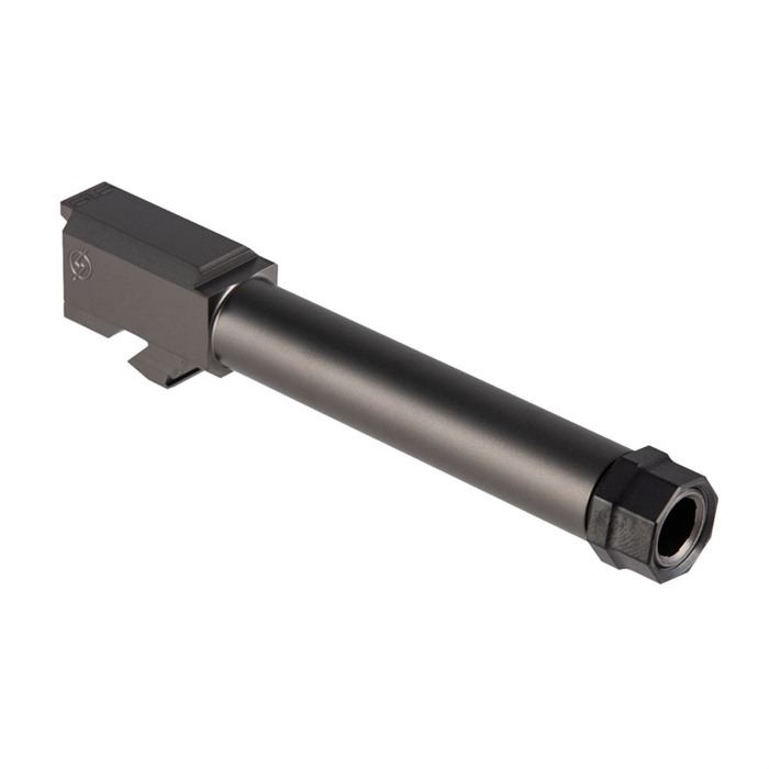 - Material: Jeder Syndicate 19 Gewindelauf wird aus 416R-Edelstahl gefertigt und verfügt über eine 1:10-Zoll Drallrate sowie verbesserte, gefräste Züge.