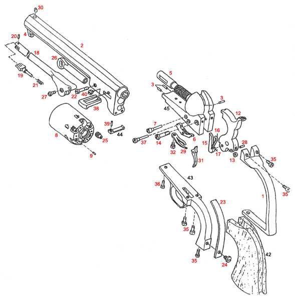 Auf dieser Seite findest du die Explosionszeichnung für den ikonischen Uberti® 1851 Navy Revolver. Diese detaillierte Zeichnung zeigt dir alle wichtigen Komponenten und Bauteile des Revolvers, sodass du genau sehen kannst, wie alles zusammenarbeitet. Egal, ob du ein Sammler, Schütze oder einfach nur ein Interessierter bist, diese Explosionszeichnung bietet dir wertvolle Einblicke in die Konstruktion und den Aufbau des Revolvers. Nutze die Informationen, um deine Kenntnisse zu erweitern oder um Reparaturen und Wartungen durchzuführen. Lass dich von der Präzision und dem Design des Uberti® 1851 Navy inspirieren!