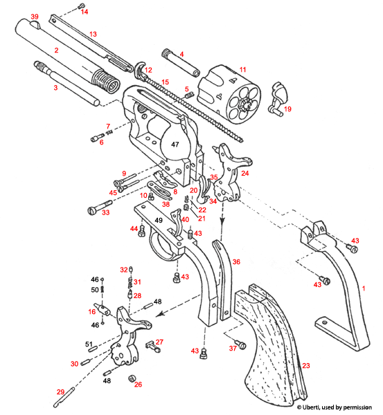 Uberti® 1873 Cattleman S.A. Explosionszeichnung - Entdecke die Details!