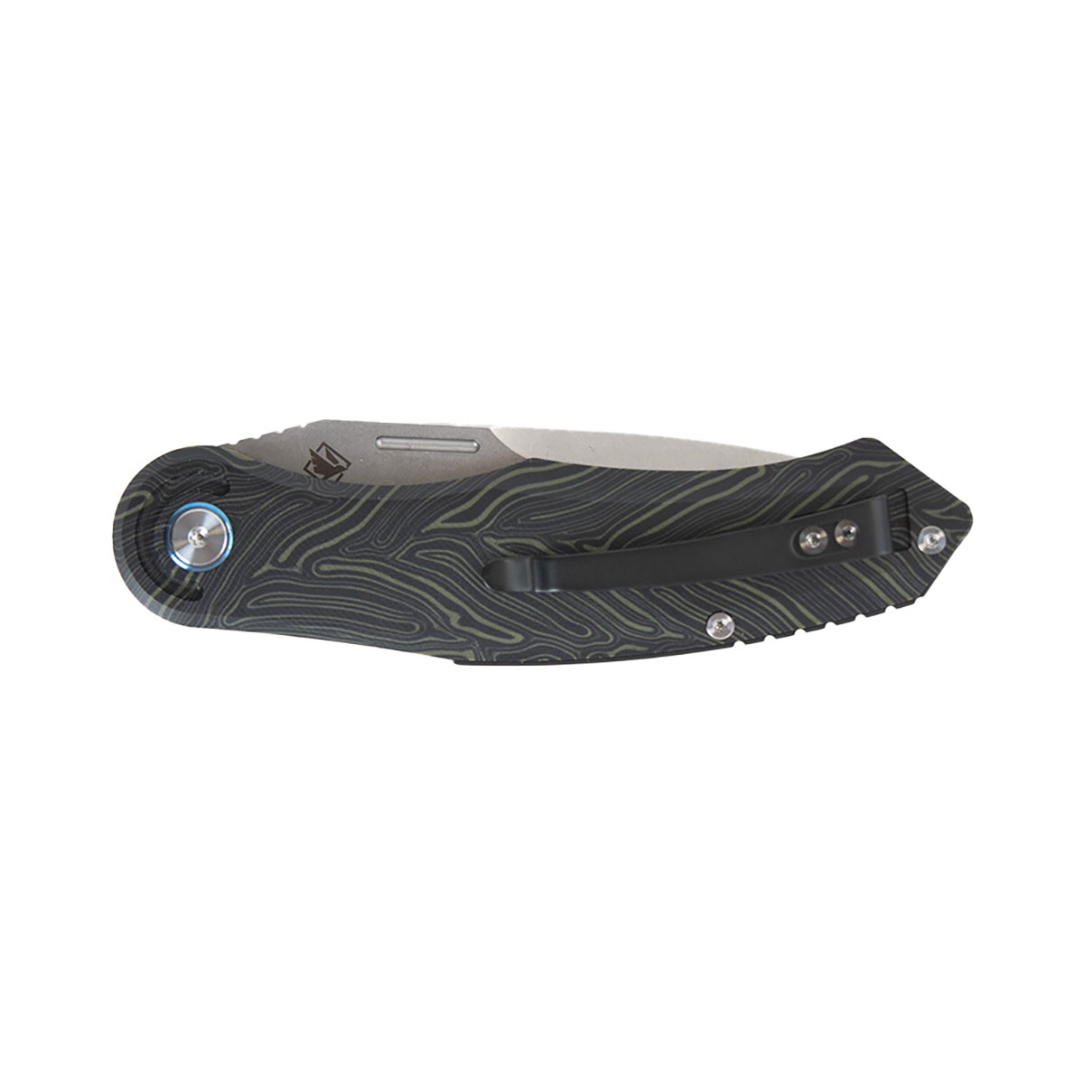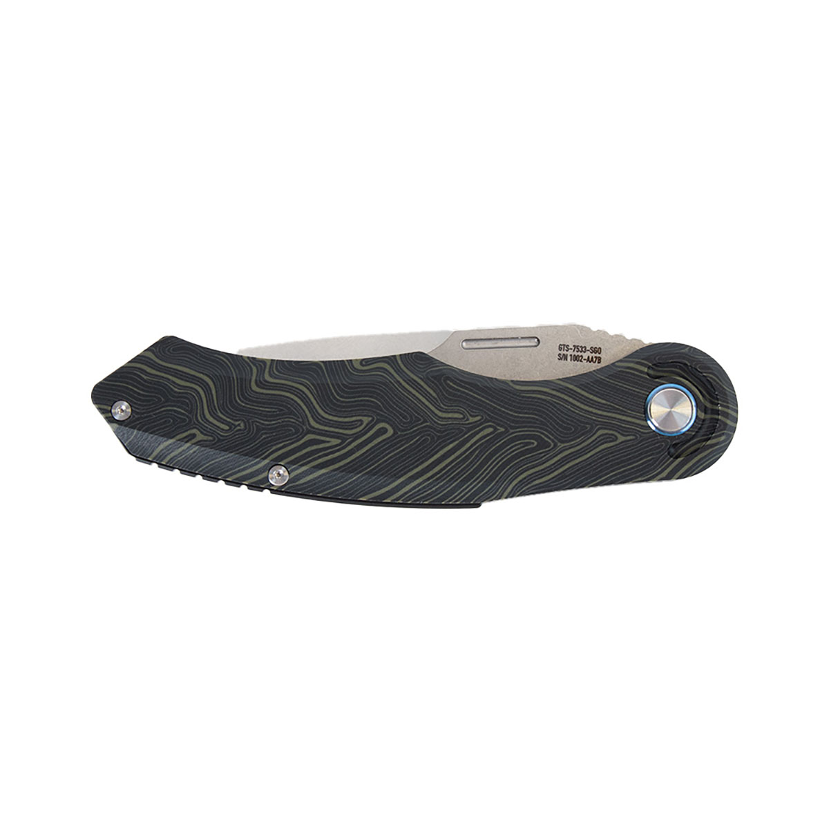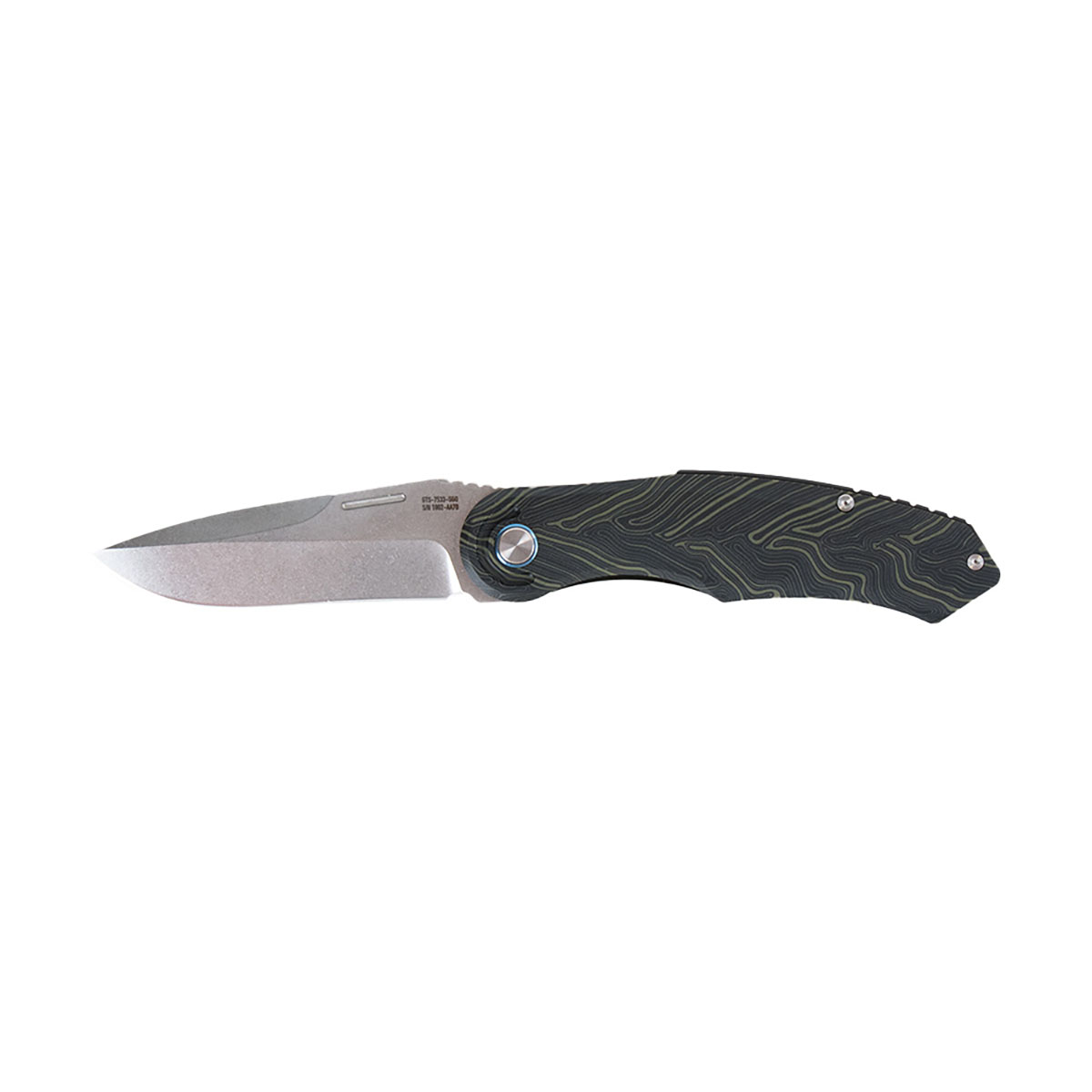 Der Griff besteht aus G10, einem robusten, leichten Material, das dir auch bei nassen Händen oder mit Handschuhen einen guten Halt gibt. Der Griff verfügt zudem über ein stilisiertes topografisches Karten-Design, das ihm einen einzigartigen Outdoor-Look verleiht, der zum Namen Scout passt.