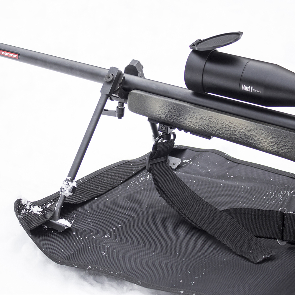 - Stellen Sie sicher, dass die Lasche für das Zweibein korrekt angebracht ist, um ein Wegrutschen zu vermeiden.