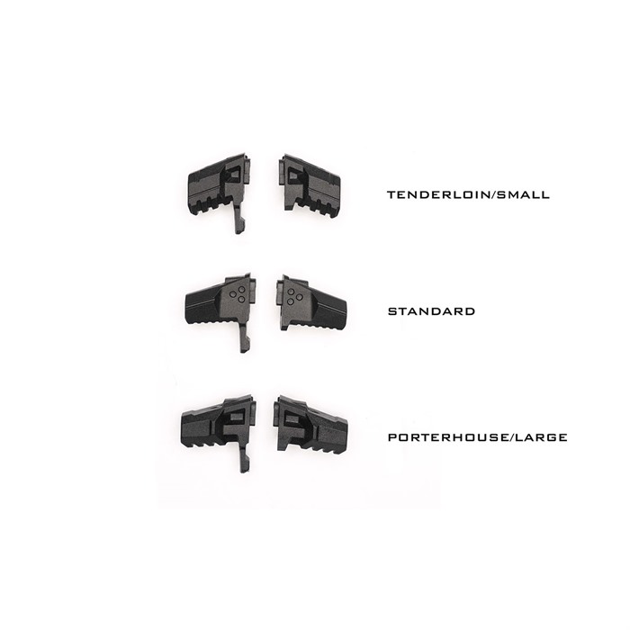793811765663 Diese austauschbaren T-Bone Riegel verfügen über das patentierte Gasumleitungssystem von SI, das es dir ermöglicht, das Gas nur nach links, nur nach rechts oder gleichmäßig auf beide Seiten abzuführen. Mit Komfort und Kontrolle im Hinterkopf sind die T-Bone ohne Riegel aus SI PolyFlex Polymer gefertigt. Die riegelose Eigenschaft des T-Bone verursacht im Vergleich zu herkömmlichen Charging Handles auf dem Markt minimalen Verschleiß an deinem AR-Oberteil. Die Strike Industries Porterhouse oder Tenderloin T-Bone Charging Handle Latches bieten dir eine modulare Möglichkeit, das Gas zu leiten und das Gefühl sowie das Aussehen eines der am meisten übersehenen und wesentlichen Teile deines AR-Oberteils einzurichten. Porterhouse/Groß: Die Strike Industries Porterhouse T-Bone Charging Handle Latches (Groß) sind längere Riegel für diejenigen, die es größer mögen. Eine größere und längere Fläche erhöht den Grip und das Hebelgefühl für Personen mit größeren Händen oder um sicherzustellen, dass du keinen Schritt verpasst, um wieder in den Kampf zurückzukehren. Auch in den meisten Fällen bieten größere Riegel mit größeren Optiken oder dickeren Handschuhen eine einfachere Bedienung. Tenderloin/Klein: Die Strike Industries Tenderloin T-Bone Charging Handle Latches (Klein) sind kleinere Riegel für diejenigen, die schlank und elegant sein möchten. Kürzere Bedienelemente für ein Setup mit niedrigerem Profil. Verpackungsinhalt: x2 T-Bone Charging Handle Latches - Rechts & Links (Groß oder Klein) x2 Set-Schrauben [M3x8mm] x1 Inbusschlüssel [1.5mm] x1 Inbusschlüssel [3mm] x1 Loctite® Threadlocker Blue 243® Produktmerkmale: Austauschbare Riegel, die einfach auf SI T-Bone Charging Handle (GROß) gewechselt werden können Größere und längere Fläche zur Erhöhung des Grips und Hebels (KLEIN) Kürzere Bedienelemente für ein Setup mit niedrigerem Profil SI patentiertes Gasumleitungssystem Konfiguriere das Gas, das nur nach links, nur nach rechts oder gleichmäßig auf beiden Seiten austritt Riegelose modulare SI PolyFlex Polymergriffe Minimaler Verschleiß am Oberteil im Vergleich zu anderen auf dem Markt KOMPATIBILITÄT: Nur mit Strike Industries T-Bone Charging Handles NICHT KOMPATIBEL: Mit anderen Marken und Modellen von Charging Handles HINWEIS: Aufgrund von Materialunterschieden werden die Farben des Griffpolymermaterials nicht mit anodisierten Aluminiumfarben übereinstimmen HAFTUNGSAUSSCHLUSS: Erwarten Sie Verschleiß des Polymer-Riegels vom Oberteil basierend auf verschiedenen Marken, Herstellern und Toleranzen - KALIFORNIEN PROPOSITION 65 WARNUNG: - WARNUNG: Dieses Produkt enthält Chemikalien, die vom Bundesstaat Kalifornien als krebserregend sowie als Ursache für Geburtsfehler oder andere reproduktive Schäden bekannt sind. Für weitere Informationen: www.P65Warnings.ca.govAus dem Programm genommen