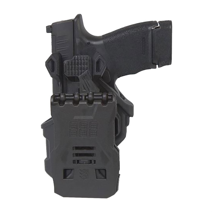 T-SERIES L2C LIGHT-BEARING HOLSTER With its streamlined thumb-activated retention, the T-Series keeps your firearm at the ready while maintaining total security. Thanks to a drawing motion that operates off of the Master Grip Principle, you'll be able to get into the fight under even the most stressful of circumstances. A combination of reinforced outer polymer and smooth, sound-dampening, hydrophobic lining ensures your T-Series will perform no matter the elements and situation. Includes Quick Dual Release (QDR) Belt Loop mounted to holster and a 2-Slot Belt Loop is included in the box. Jacket Slot Belt Loop sold separately.