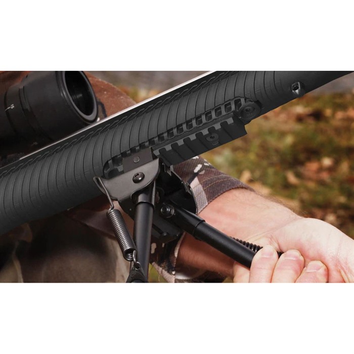 - Das patentierte Stowaway™ Zubehörschiene ist im Vorderschaft verborgen. Wenn du es umdrehst, ist die Schiene für ein Zweibein oder andere Zubehörteile verfügbar.