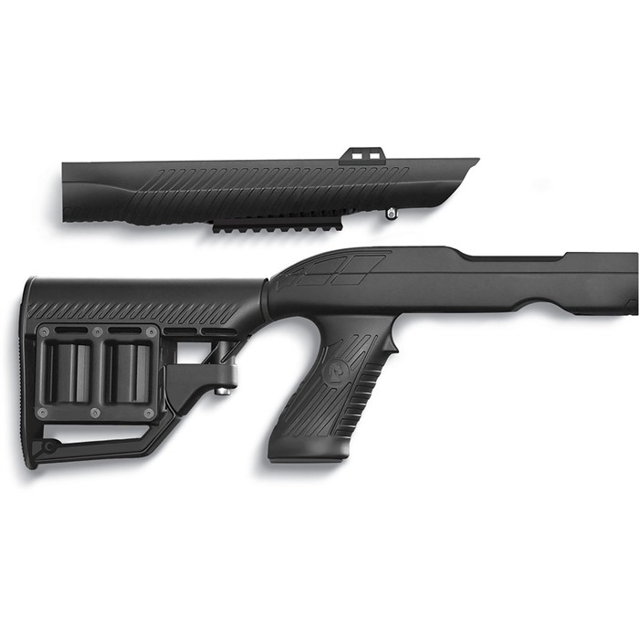 - Spezifikationen: Kompakte, tragbare Takedown-Konstruktion, Stowaway™ Zubehörschiene im Vorderschaft verborgen, verstellbarer Hinterschaft mit Magazinaufbewahrung, strapazierfähige verstärkte Polymerkonstruktion, erhältlich in Schwarz und beliebten Camouflage-Mustern, TacTRED™ Monopod-kompatibel.