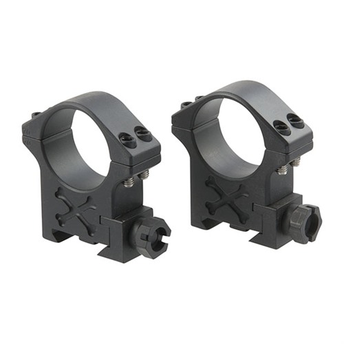 Heavy-duty scope rings are precision-machined from solid billet aluminum with dual recoil lugs to ensure your tactical scope won’t budge under the heaviest recoil. Full-width ring caps are cut from the same billet as the bottom half of the ring for precise fit and held in place with four stainless steel Allen head screws that won’t work loose when properly tightened. Matching serial numbers ensure you always mate the cap with the bottom it came with. Locking bar, heavy-duty crossbolt and oversized, ½" hex nut locks the ring to any MIL-STD 1913 Picatinny rail. Hard-anodized for extra surface strength, with a non-reflective matte black finish. Engraved front and back with the distinctive Talley cross-bones logo.