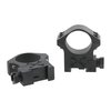 SPECS: 7075 T6 aluminum, hardcoat anodized, matte black, with 303 stainless steel screws, black finish. 1.9" (5cm) wide, .665" (16.8mm) thick. Models available for 1" (2.5cm) or 30mm O.D. scope tubes. Heights measured from top of base to center of ring: Low - 1" (2.5cm); High - 1.275 (3.2cm).