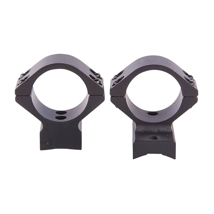 SPECS: 7000 series aluminum, black, anodized, matte finish. Accepts 1" dia. scopes, unless otherwise listed in fits column for 30mm dia. scopes. Height from bottom of ring to top of receiver: Low - .400" (10.1mm), Med - .500" (12.7mm). High - .640" (16.3mm), X‑High - .740" (18.8mm). Approx. weight 2.1 oz. (59 g). Some heights vary, see chart below. Rem. 700 also fits 721/722/725 and 40X models. Rem. Model Seven fits receivers with four screw holes. Savage AccuTrigger fits round top centerfire receivers with AccuTrigger. Win. 70 fits .860" rear hole spacing only.