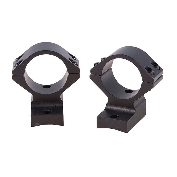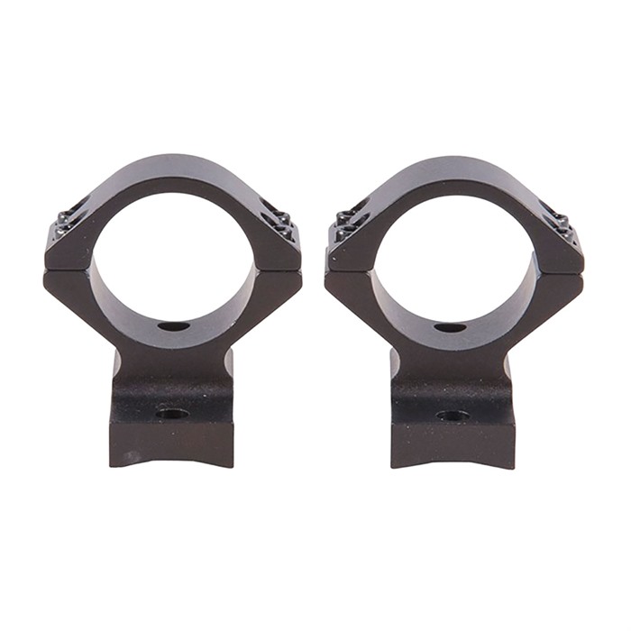 SPECS: 7000 series aluminum, black, anodized, matte finish. Accepts 1" dia. scopes, unless otherwise listed in fits column for 30mm dia. scopes. Height from bottom of ring to top of receiver: Low - .400" (10.1mm), Med - .500" (12.7mm). High - .640" (16.3mm), X‑High - .740" (18.8mm). Approx. weight 2.1 oz. (59 g). Some heights vary, see chart below. Rem. 700 also fits 721/722/725 and 40X models. Rem. Model Seven fits receivers with four screw holes. Savage AccuTrigger fits round top centerfire receivers with AccuTrigger. Win. 70 fits .860" rear hole spacing only.