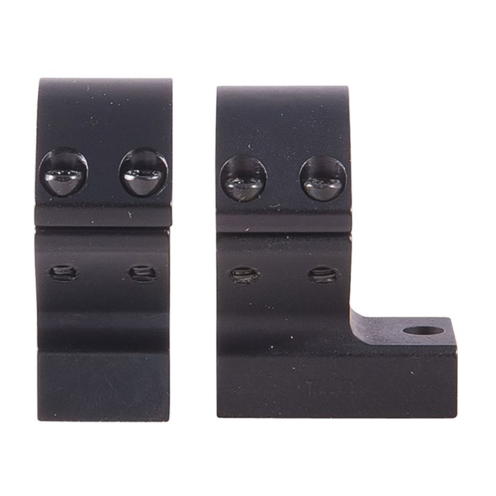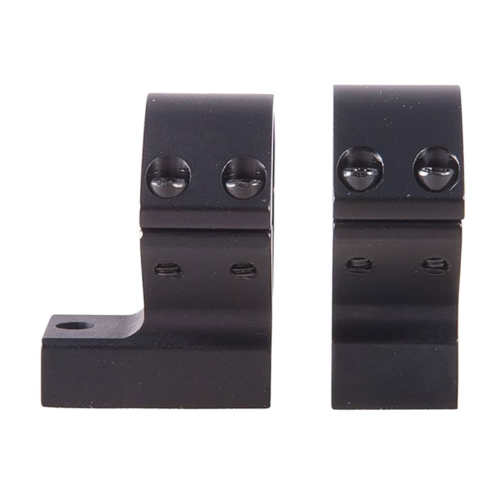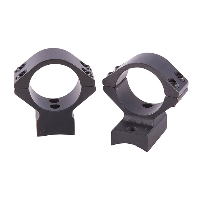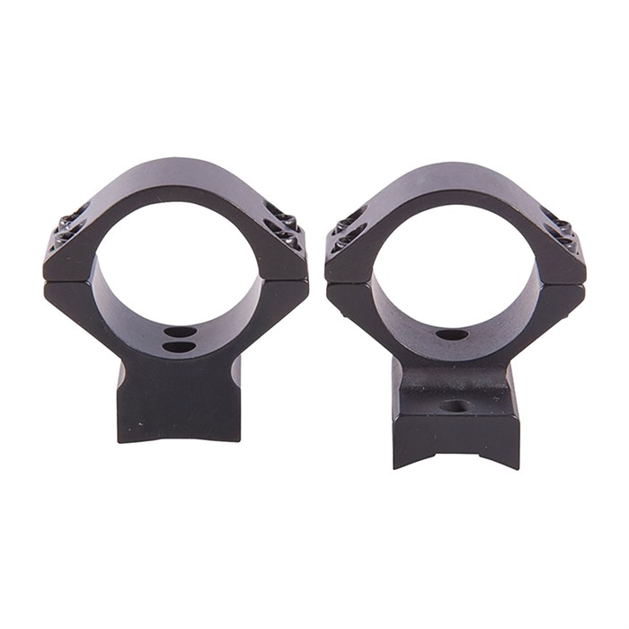 SPECS: 7000 series aluminum, black, anodized, matte finish. Accepts 1" dia. scopes, unless otherwise listed in fits column for 30mm dia. scopes. Height from bottom of ring to top of receiver: Low - .400" (10.1mm), Med - .500" (12.7mm). High - .640" (16.3mm), X‑High - .740" (18.8mm). Approx. weight 2.1 oz. (59 g). Some heights vary, see chart below. Rem. 700 also fits 721/722/725 and 40X models. Rem. Model Seven fits receivers with four screw holes. Savage AccuTrigger fits round top centerfire receivers with AccuTrigger. Win. 70 fits .860" rear hole spacing only.