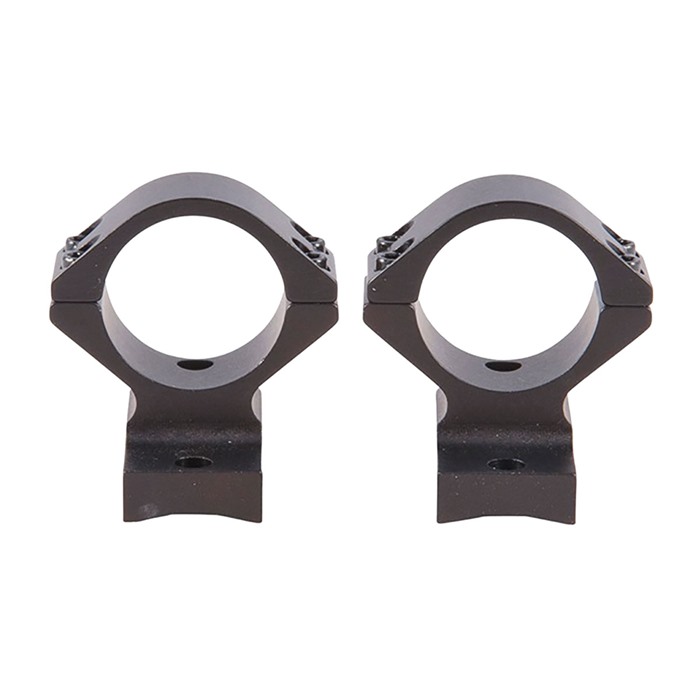 SPECS: 7000 series aluminum, black, anodized, matte finish. Accepts 1" dia. scopes, unless otherwise listed in fits column for 30mm dia. scopes. Height from bottom of ring to top of receiver: Low - .400" (10.1mm), Med - .500" (12.7mm). High - .640" (16.3mm), X‑High - .740" (18.8mm). Approx. weight 2.1 oz. (59 g). Some heights vary, see chart below. Rem. 700 also fits 721/722/725 and 40X models. Rem. Model Seven fits receivers with four screw holes. Savage AccuTrigger fits round top centerfire receivers with AccuTrigger. Win. 70 fits .860" rear hole spacing only.