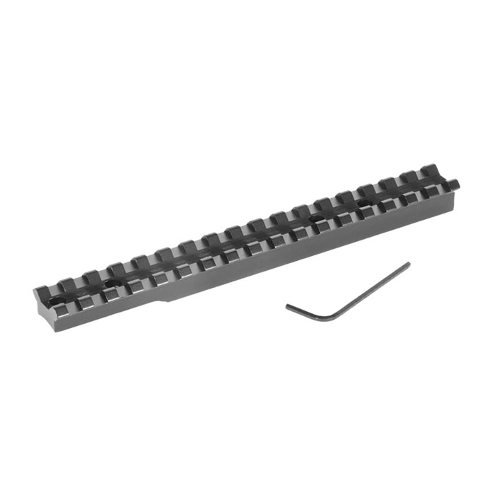 EGW empfiehlt, den Abstand der Löcher in deinem Receiver zu messen, um sicherzustellen, dass er mit den veröffentlichten Abmessungen übereinstimmt. Die Picatinny-Kreuzschlitze verlaufen über die gesamte Länge der Schiene, was dir maximale Flexibilität bietet. Der Kanal in der Mitte reduziert die Gesamtmasse der Montage, und in vielen Fällen wird die Nutzung der werkseitigen Kimme und Korn nicht behindert.